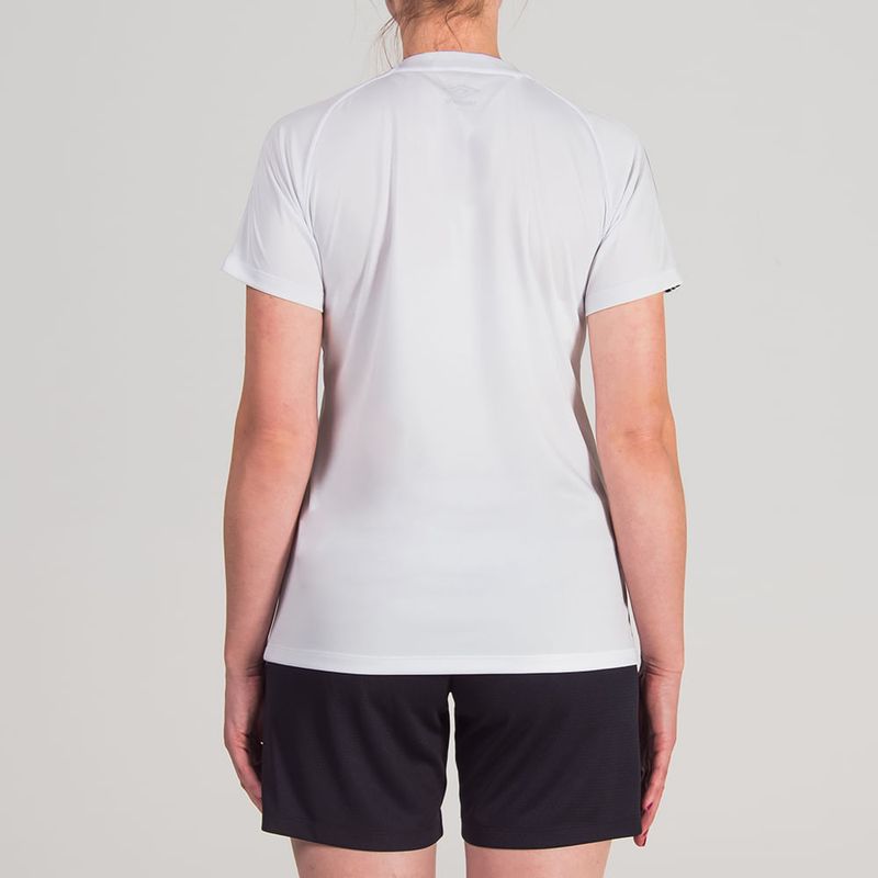 A camisa feminina Umbro Tradicional Tape é confeccionada em tecido 100% poliéster. Ela possui gola careca, manga ranglan e detalhe de fita com logo Umbro no ombro.