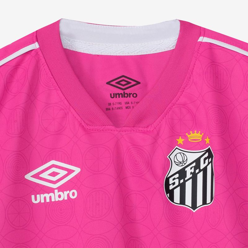 Deixe os pequenos torcedores do peixe no estilo e engajados com a Camisa Infantil dos Santos Outubro Rosa 2023. O modelo possui grafismo que remete ao autoexame das mamas, que identifica precocemente nódulos. Parte das vendas será revertida para FEMAMA, líder de grupos no controle de câncer de mama. E o slogan da campanha deste ano é “Empatia que nos Une!”