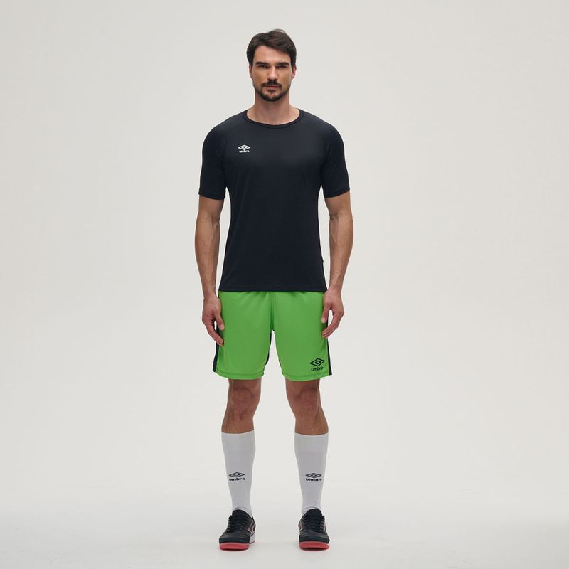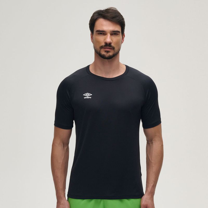 Camisa masculina confeccionada em malha leve 100% poliamida, indicada para treinos. Modelagem regular com gola careca pespontada e manga curta raglan. Possui logo Umbro em termo à base d’água aplicado na parte frontal direita superior.