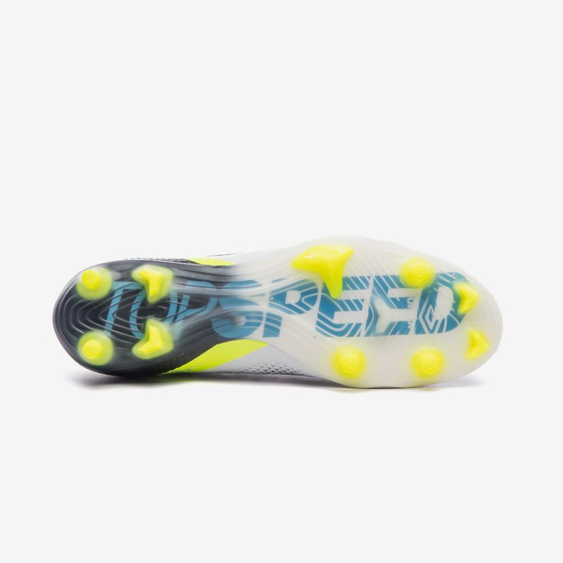 A Chuteira Campo Adamant Top Speed Pro é um modelo profissional ultraleve com foco em alto rendimento. Seu cabedal combina materiais como knit, TPU e tecnologia Diamond Grip para melhorar o controle nos chutes e passes. A palmilha anatômica em EVA e o solado de campo FG de 11 travas mistas (cônicas e setas), com ponteiras em TPU, é produzido em Pebax translúcido que oferece retorno de energia e reforço na área do enfranque.
