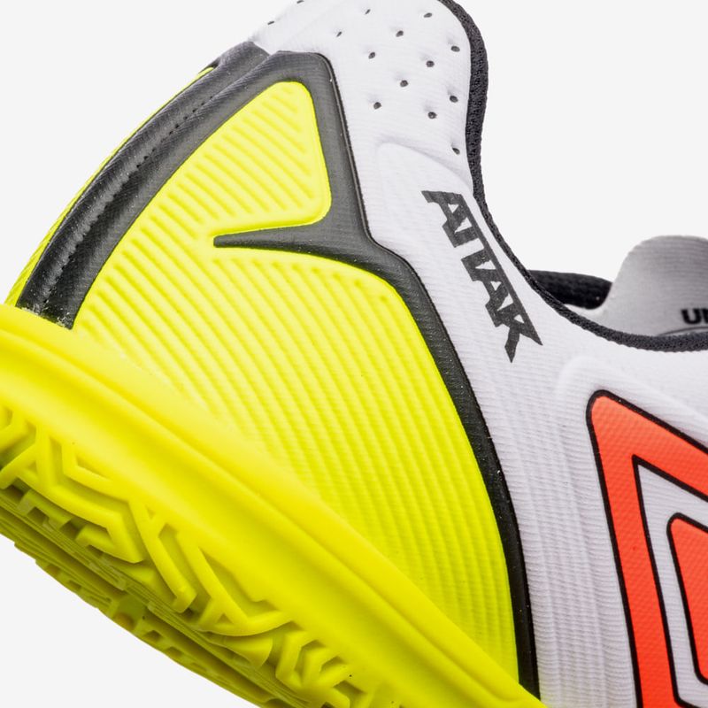 A Chuteira Futsal Umbro Attak III foi feita para jogadores que buscam alto desempenho nas quadras. Seu cabedal frequenciado 100% sintético oferece ajuste anatômico e resistência, enquanto a palmilha X-Comfort em EVA garante amortecimento extra. O novo material do cabedal proporciona leveza e flexibilidade. O solado em borracha ID Vortex foi desenvolvido para máxima tração e estabilidade em superfícies indoor, permitindo movimentação precisa durante o jogo.
