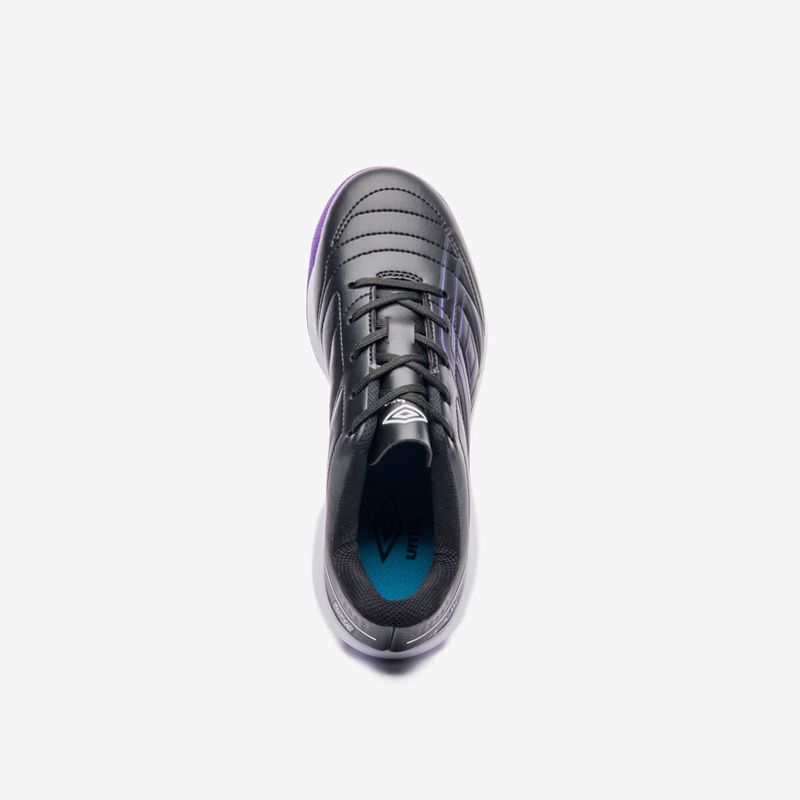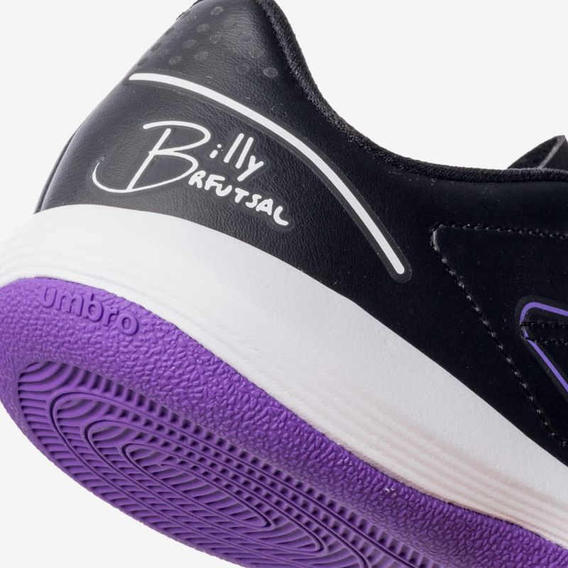 A Chuteira Futsal Umbro BR Futsal Jr foi desenvolvida em parceria com Billy, do canal BRFUTSAL, trazendo o mesmo design do modelo adulto. O cabedal em material laminado emborrachado apresenta grafismo exclusivo, costuras programadas de reforço e assinatura do criador. Conta com QR Code para acesso ao BRFUTSAL, lingueta tradicional e Diamante Umbro Outline. O solado em borracha antiderrapante com entressola em EVA garante tração e conforto.