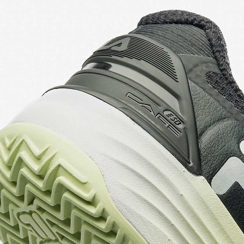 O Tênis para Saibro Feminino FILA Float Verve Clay é ideal para o jogo na quadra de terra e traz seis tecnologias: no cabedal - FLEXX CAGE, com placas estabilizadoras; CAGE ESB, estabilizando a aterrissagem; e TECH LITE FUSE, fina película resistente e leve; no solado - FLOAT, amortecimento e retorno de energia; CAGE AMH, antitorção no mediopé; e borracha EVER-GRIP, tração em superfícies secas ou molhadas. Peso (tamanho 41): 385 g. Drop: 10 mm.