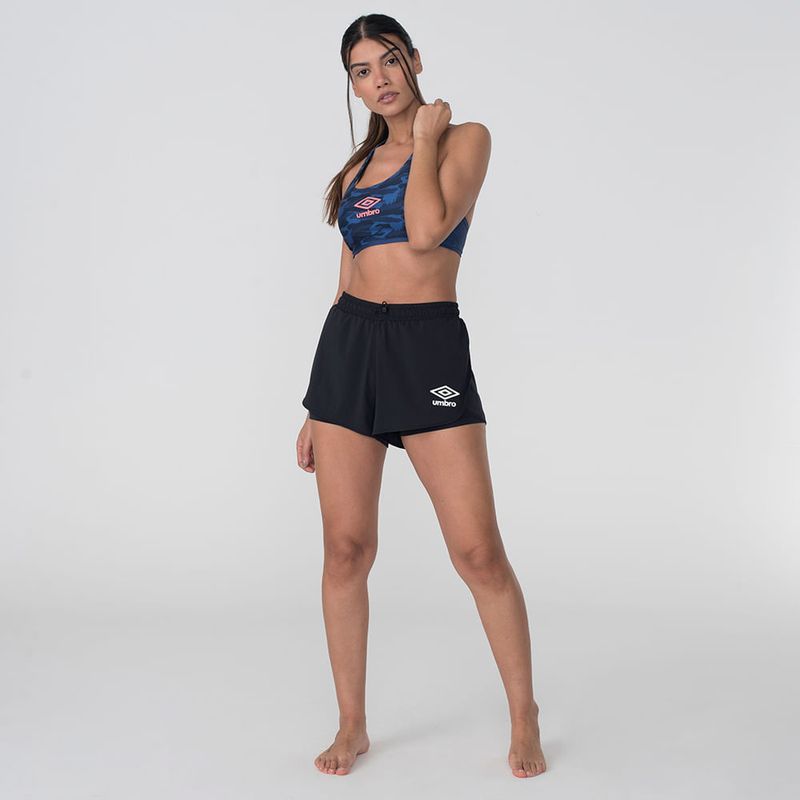 Confeccionado em poliéster e elastano, o Top Feminino Umbro Futevôlei Graphic Camuflage traz estampa full print sublimada (somente na variante azul), forro na parte frontal, barra com elástico interno e logo da coleção. O modelo é ideal para uma prática esportiva confortável.